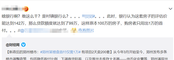 稍晚时候,基金君又看到一个新闻,郑州已经出现了差不多“零首付”的情况, 首付仅需要1万元!