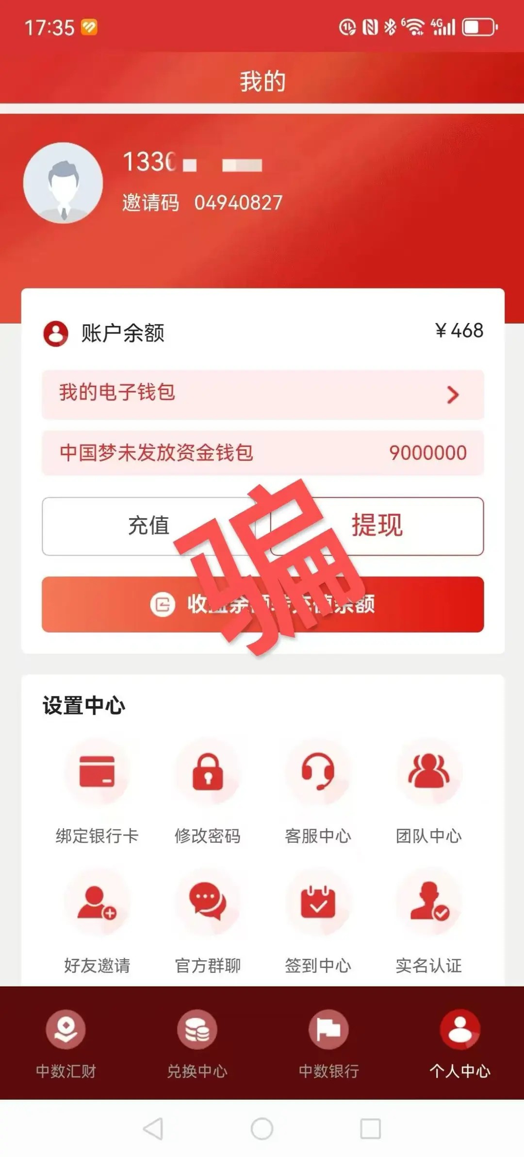 “中数汇财”APP是打着“国家项目”旗号的民族资产解冻类诈骗项目,开始让大家尝到甜头,等进去的人差不多的时候,就会对这些人进行精准诈骗,不要提交身份信息注册,以免上当被骗。