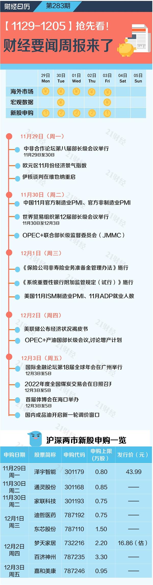 中国11月官方制造业PMI、官方非制造业PMI即将发布。