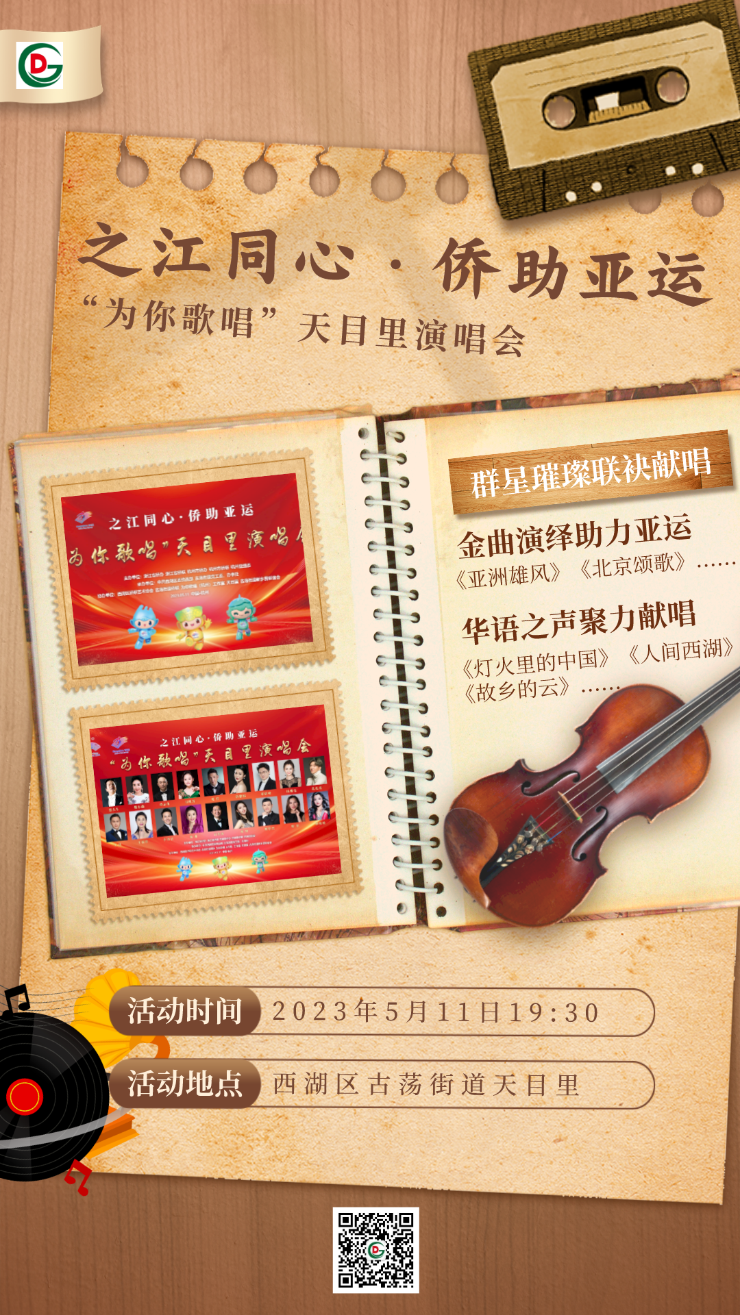 为做好亚运宣传、讲好亚运故事、展现侨界力量,5月11日晚,由浙江省侨办、浙江省侨联、杭州市侨办、杭州市侨联,杭州亚组委联合主办,杭州市西湖区委统战部,古荡街道党工委、办事处承办的“之江同心·侨助亚运”——“为你歌唱”天目里演唱会在杭州市西湖区古荡街道天目里隆重举行。此次演唱会通过浙广直播视频号平台面向全球华人、华侨、留学生等同步线上直播,超过160万人次进行观看。
