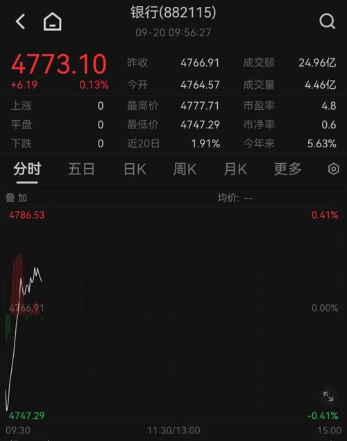 20日早盘,银行指数直线拉升。