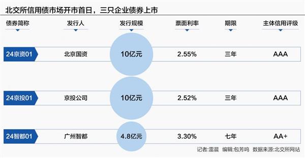 记者注意到,1月15日首批上市的3只企业债券,分别是“24京资01”“24京投01”“24智都01”。