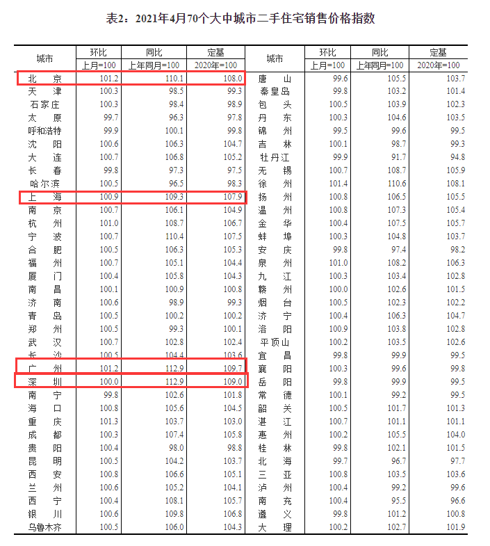 国家统计局表示,据测算,4月份,4个一线城市新建商品住宅销售价格环比上涨0.6%,涨幅比上月扩大0.2个百分点。其中,北京、上海、广州和深圳分别上涨0.6%、0.3%、1.1%和0.5%。
