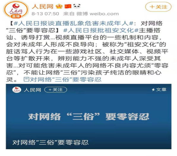 振奋人心!人民日报谈直播乱象:对网络“三俗”要零容忍