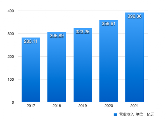 2021年500强企业入围门槛需要营业收入达到392.36亿元,相较于比上年门槛提高了32.75亿元。最近5年,500强入围门槛显著提高。
