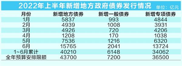 经全国人大批准,今年全年预算安排的新增地方债限额为43700亿元,包括一般债限额7200亿元和专项债限额36500亿元。虽然年初预算安排的总量较过去两年有所下调,但今年上半年新增地方债积极靠前发力,发行节奏明显快于过去两年。