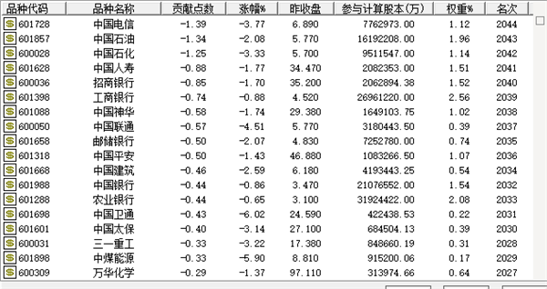 从贡献度来看,这些大家伙对指数跌幅贡献最大。