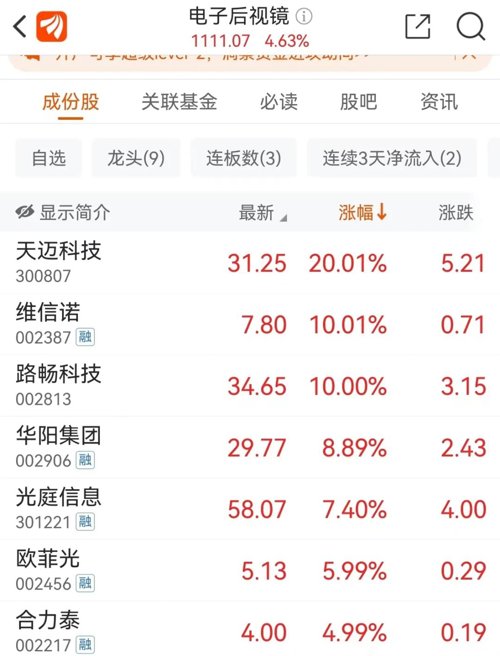电子后视镜板块多股涨停