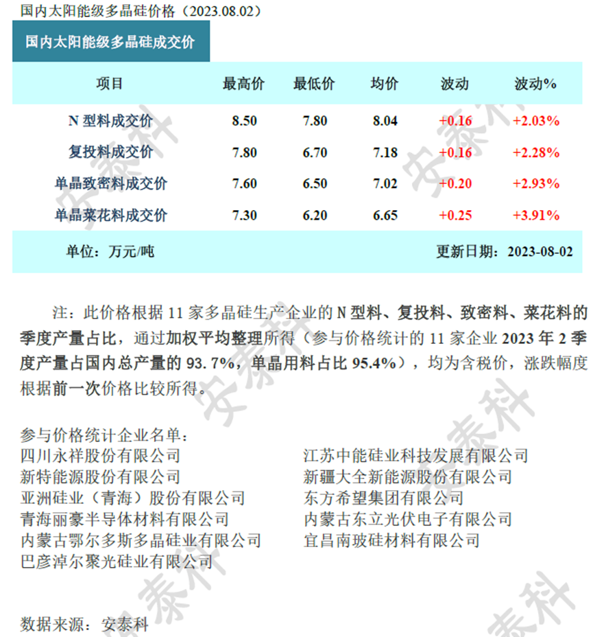 预计在三季度组件端排产趋于乐观增长的情况下,硅料环节主流价格仍然有反弹和利润修复空间,八月核心看点将转移至硅料与硅片环节之间的利润分配和议价权争夺。
