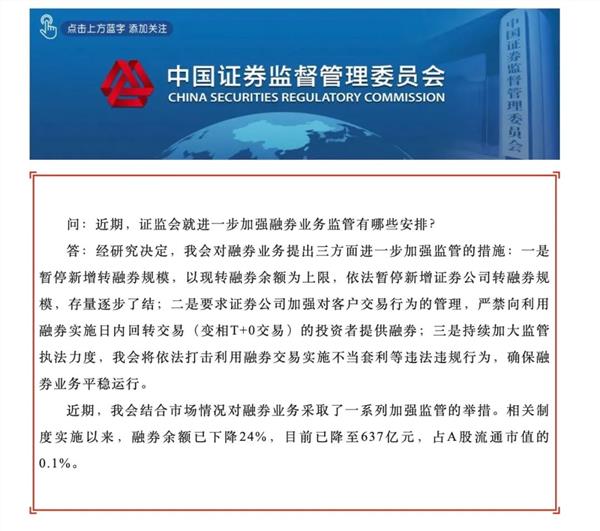 (原标题:最新!证监会:暂停新增转融券!存量逐步了结)