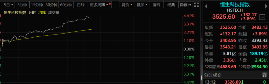 港股方面,午后,恒生指数涨幅扩大至2%,恒生科技一度大涨超4%,中升控股涨超10%,美团涨超8%,京东涨超7%,李宁涨近6%。