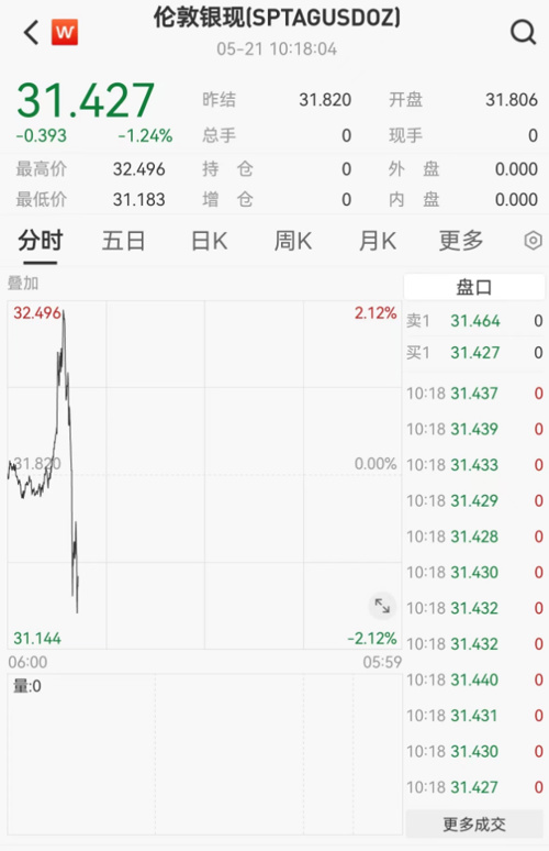 现货白银盘中跳水