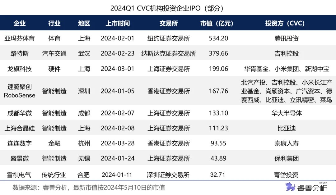 一季度214家CVC出手,联想创投活跃度居首;吉利控股、比亚迪各收获两个IPO|2024Q1中国企业创投CVC发展报告