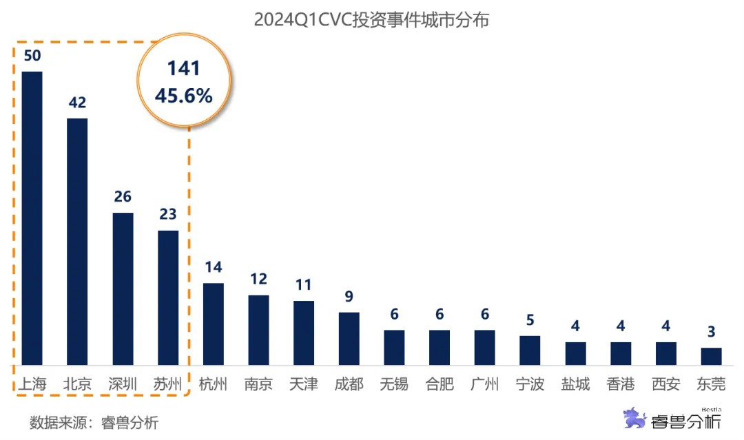 上海、北京、深圳、苏州是吸引CVC资金的“领头羊”