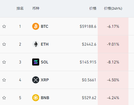 比特币也大跌